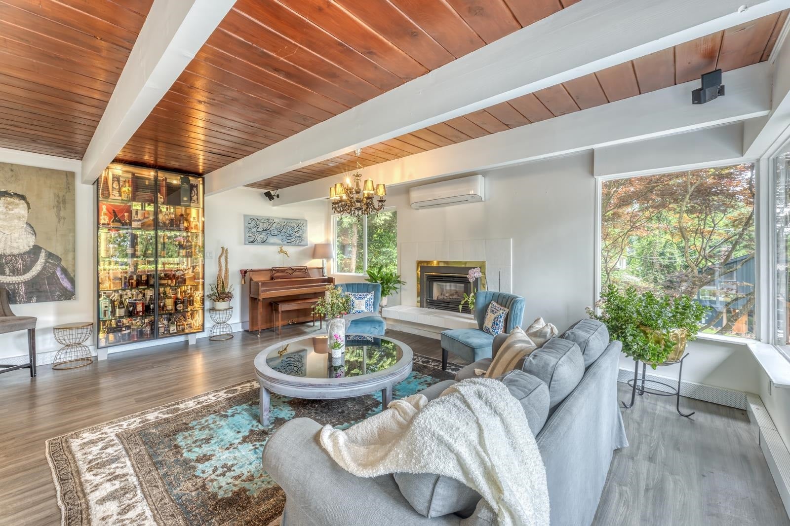 Gorgeous post-and-beam home on a quiet, tree-lined street in Upper Lonsdale. Family home updated living with a reverse floor plan maximizing light and privacy. Vaulted ceilings, exposed beams, and a stunning glass-enclosed solarium bring the outdoors in. Spacious primary suite with walk-in closet and French doors to a lush, multi-tiered deck and landscaped yard. Open-concept kitchen, large balcony, radiant heat, and carport. Steps to Carisbrooke School, parks, and trails. A private, architecturally timeless retreat in one of North Van’s most coveted neighborhoods.