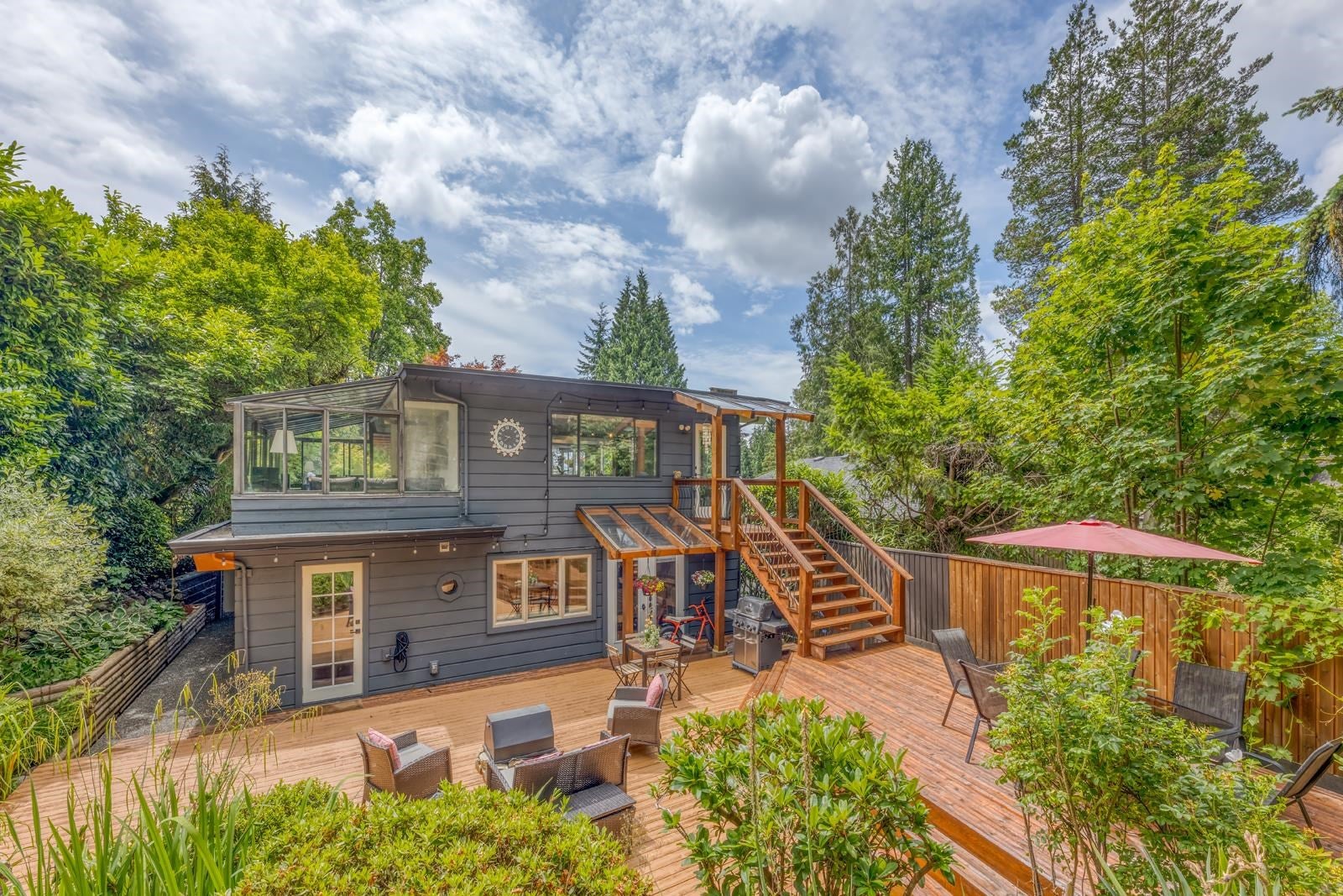 Gorgeous post-and-beam home on a quiet, tree-lined street in Upper Lonsdale. Family home updated living with a reverse floor plan maximizing light and privacy. Vaulted ceilings, exposed beams, and a stunning glass-enclosed solarium bring the outdoors in. Spacious primary suite with walk-in closet and French doors to a lush, multi-tiered deck and landscaped yard. Open-concept kitchen, large balcony, radiant heat, and carport. Steps to Carisbrooke School, parks, and trails. A private, architecturally timeless retreat in one of North Van’s most coveted neighborhoods.
