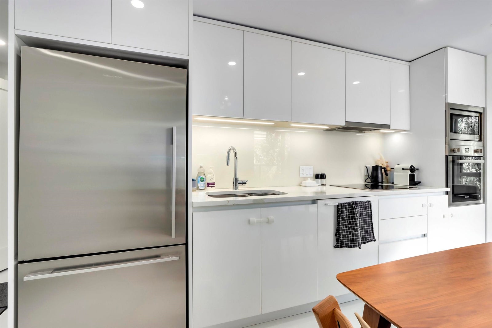 Luxurious boutique living in Kitsilano! This fully concrete 17-unit residence showcases Italian kitchens & bathrooms by Euromobil and Carasa, induction cooktops, Bosch & Fisher Paykel stainless steel appliances, and quartz counters. This NE-facing home enjoys morning and afternoon sun, complemented by a spacious covered patio—perfect for morning coffee or evening relaxation. Includes 1 parking stall with EV charger. Located on a quiet, tree-lined street just steps from trendy shops along West 4th & Yew, Arbutus Greenway, parks, and schools. Only a 10-minute walk to Kits Beach and moments to the upcoming Broadway SkyTrain station, this home offers the perfect blend of tranquility and convenience in one of Vancouver’s most coveted neighbourhoods.