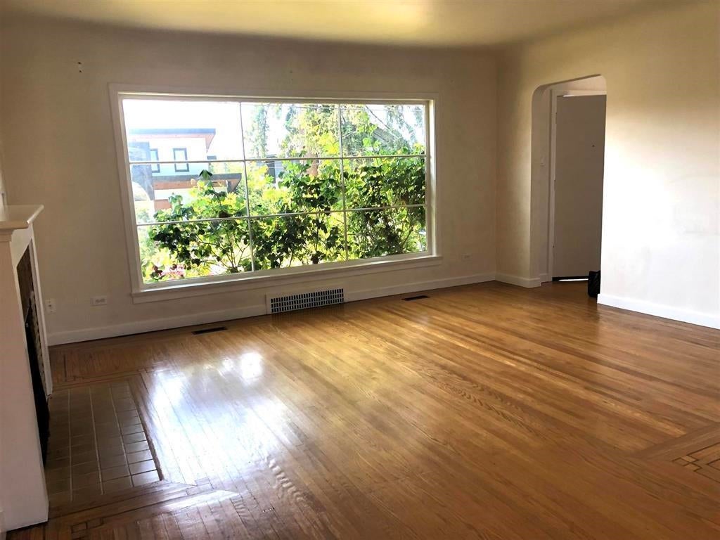 Upper Lonsdale home with back lane access, featuring 3 bedrooms and 1 bathroom. Real hardwood floors throughout the living, dining, and bedrooms, and a cozy gas fireplace in the living room. Includes a spacious double garage for convenient parking and storage.